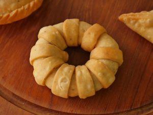Round turn ker lein aur edges per pani laga ker dono sides ko apas mein seal ker ka ring shape bana lein.