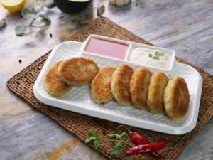 -Grease hands with oil,take small quantity of mixture (45g) & make cutlets of equal sizes.