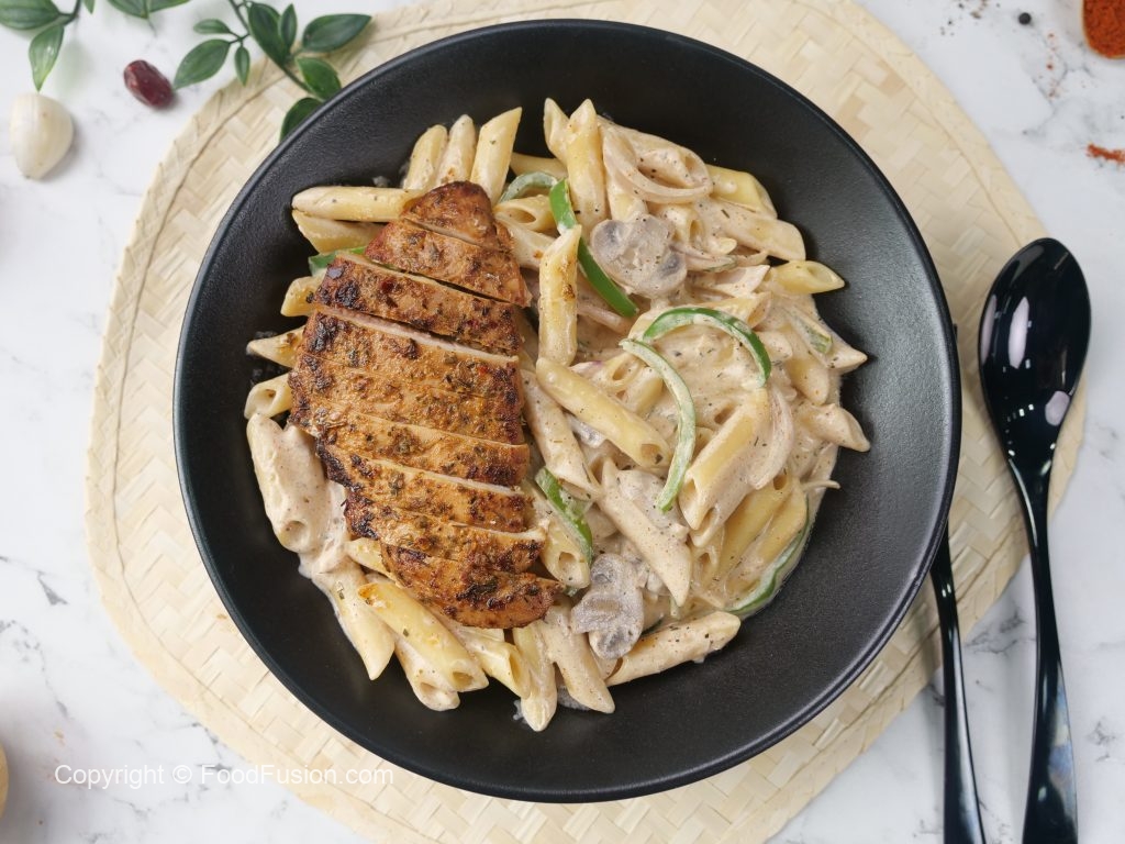 -On a cast iron pan,add cooking oil,marinated cajun chicken (thawed overnight) & cook on low flame from both sides until done (3-4 minutes each side).