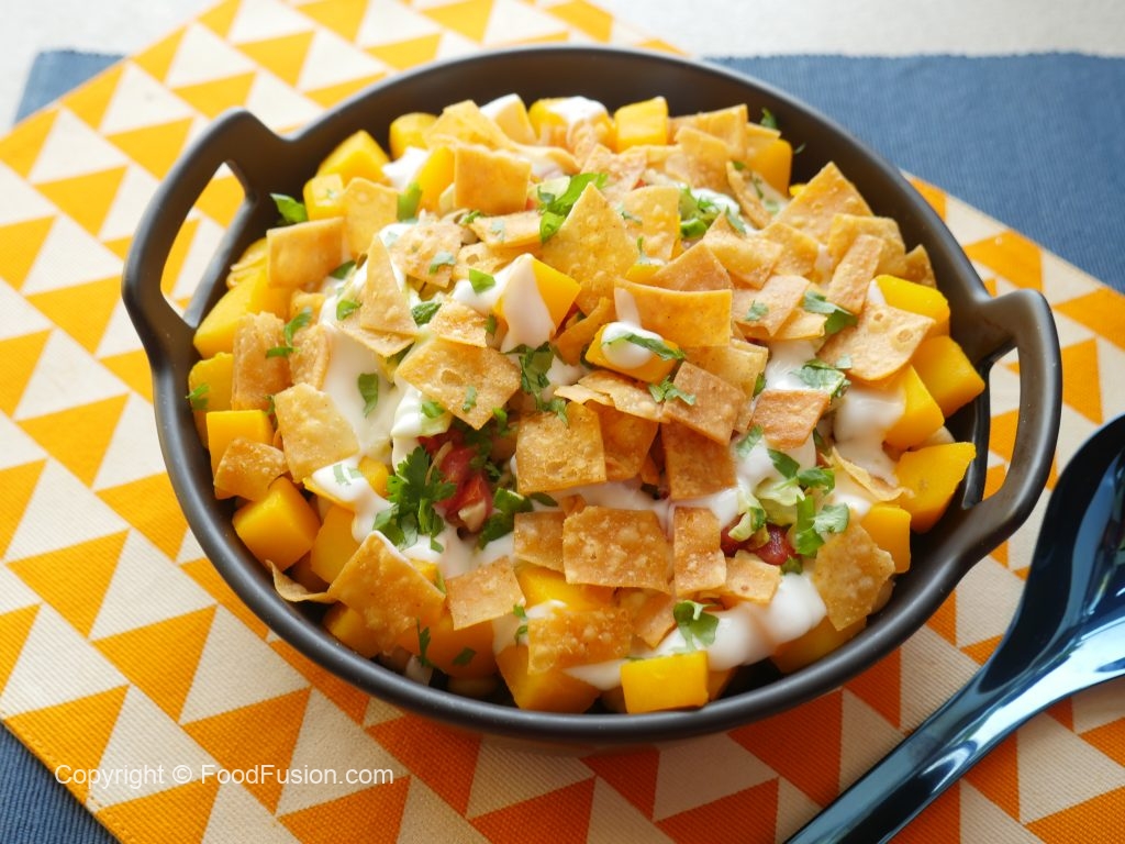 In serving dish,add papri,fresh coriander & serve!