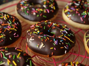 Place doughnuts,spray non-stick spray & air fry at 150C for 4-5 minutes.
