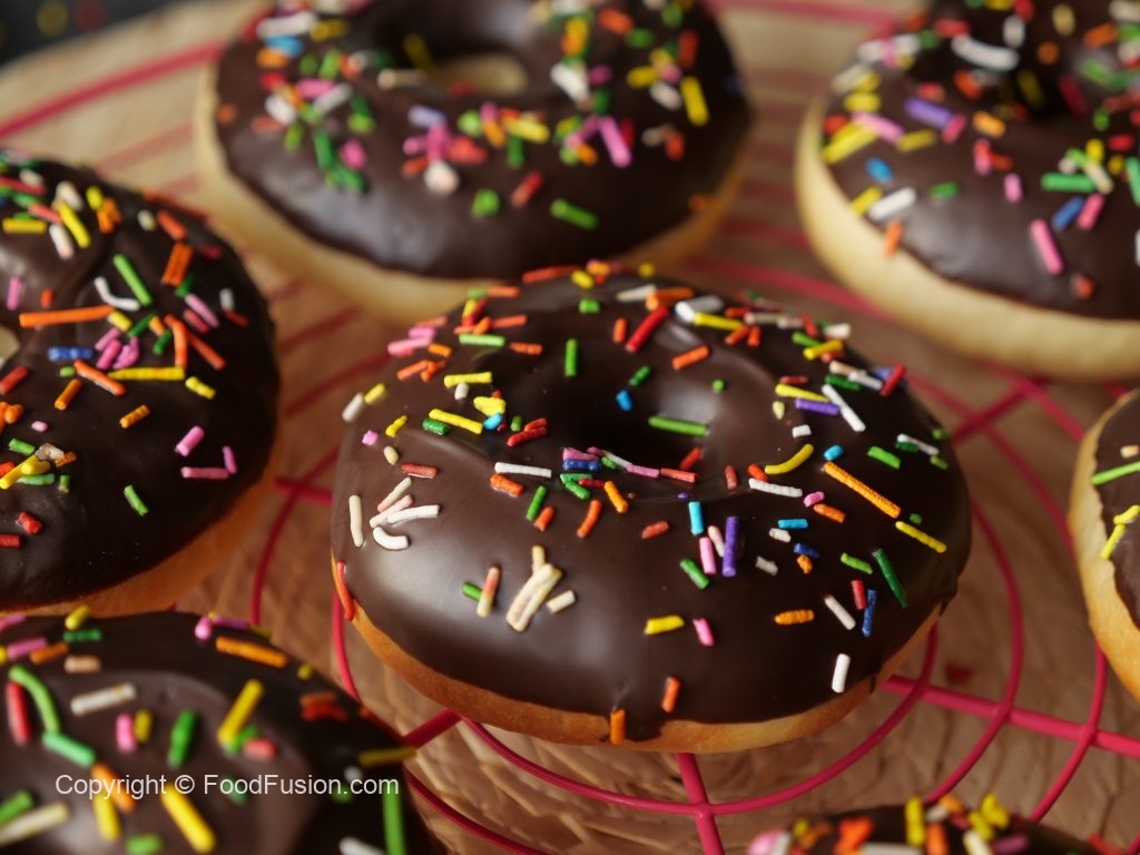 Doughnuts rakh dein,non-stick spray karein aur 150C per 4-5 minutes kliya bake ker lein.