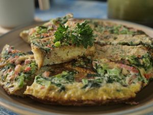 Flip the omelet on serving plate,cut into slices & serve!