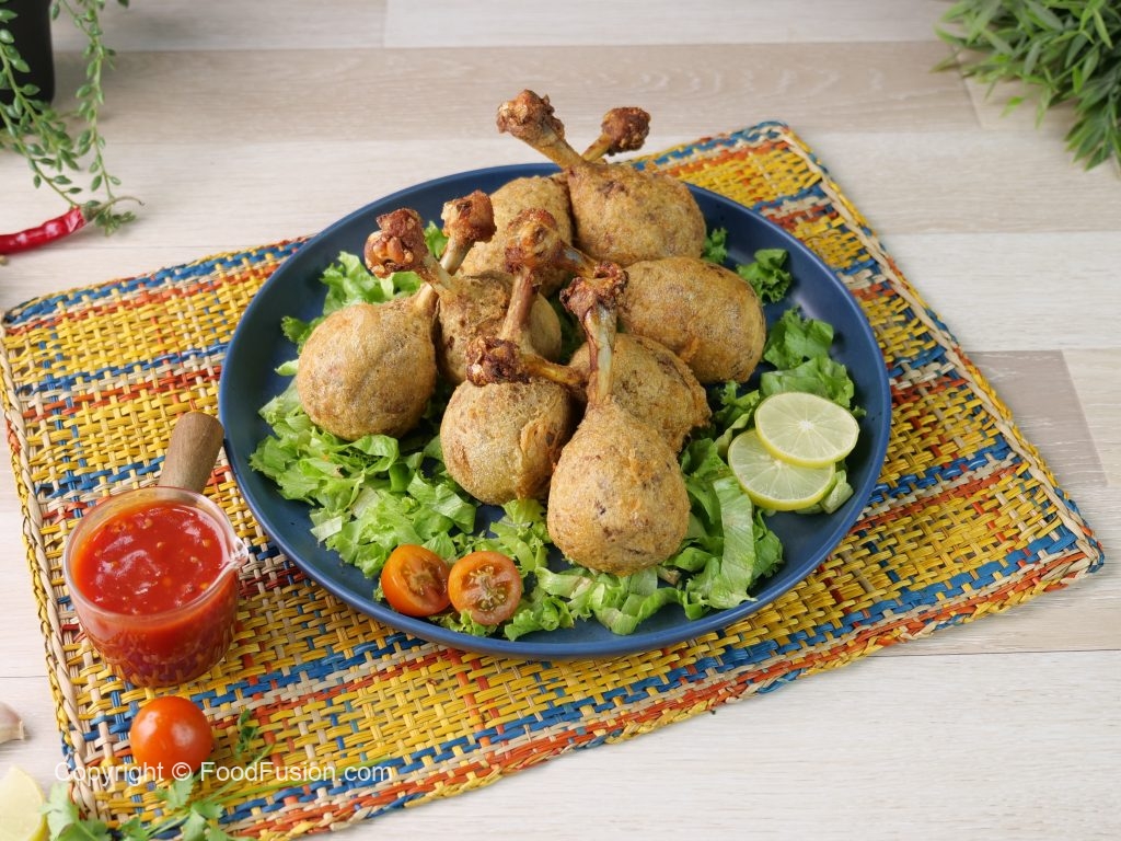 -Ab drumsticks ko maida mein coat karein aur pheetay hoye anday mein dip ker lein.