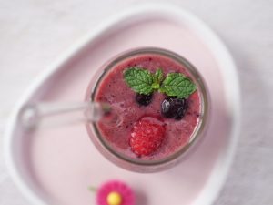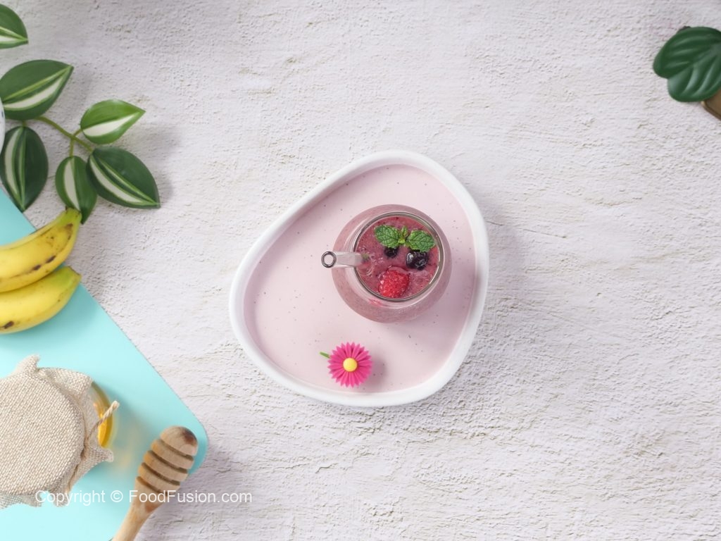 -In serving glass,add prepared smoothie & garnish with frozen berries,mint leaves & serve!