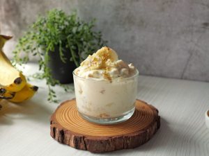 -Garnish with cake crumbs,banana slices,drizzle honey & serve!