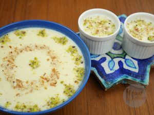 -Saucepan mein bareek cheeni,anday ki zardi,vanilla essence,cornflour aur (half quantity) add karein & whisk karein phir remaining milk add karein & phir se whisk karein.