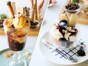 -Large bowl mein ice cubes add karein,upar bowl rakhein,cream add karein & high speed par 2-3 minutes beat karein.