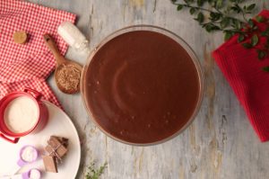 -In a jug add compound chocolate, olpers cream & microwave for a minute. Then mix well until chocolate melts & set aside.
