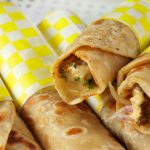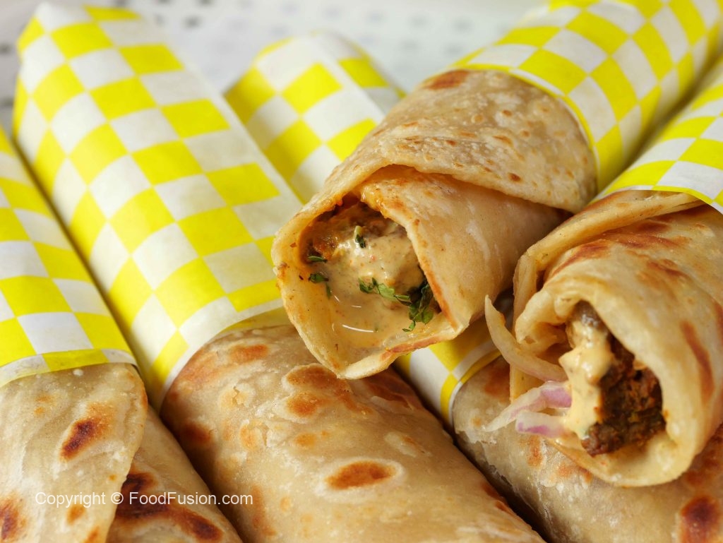 -On paratha,add beef boti kabab,onion rings,fresh coriander,prepared street style yogurt sauce,imli aloo Bukhara chutney,fold & wrap in butter paper & serve !