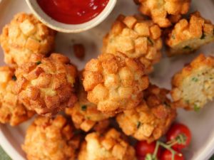 -In a wok,heat cooking oil & fry on medium low flame until golden & crispy (makes 15).