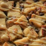 Add bread cubes,almonds,raisins,chocolate chips,prepared egg mixture,bread cubes,raisins,almonds, chocolate chip and prepared egg mixture.