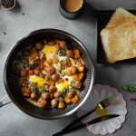 -In same frying pan,add cooking oil,onion,potato,mix well & cook on medium flame for 2-3 minutes.