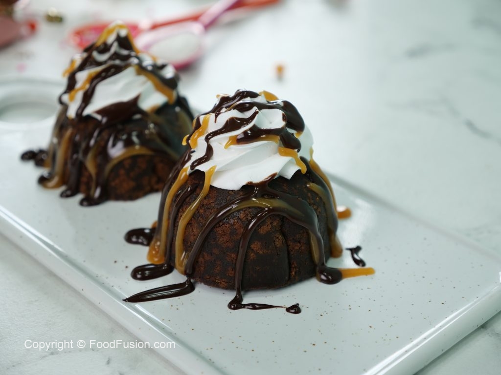-Brownie bomb ko cling film sa remove ker ein aur serving plate per invert ker lein.