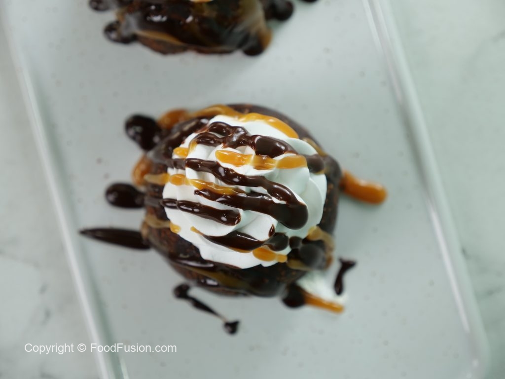 -Decorate with whipped cream,prepared caramel sauce & chocolate sauce & serve!