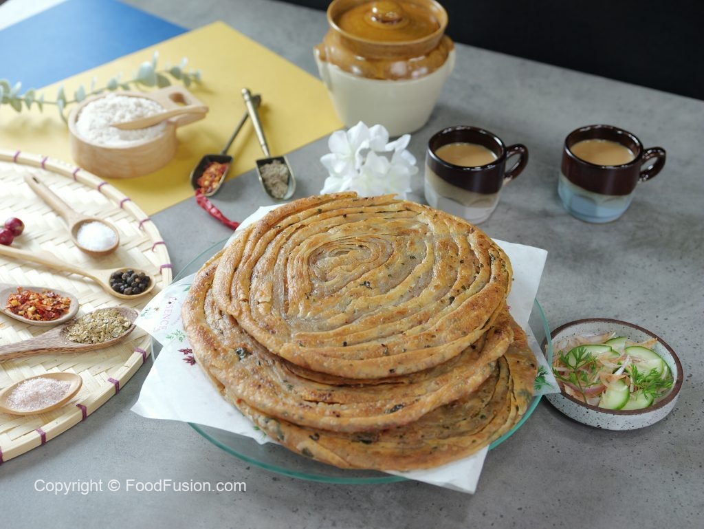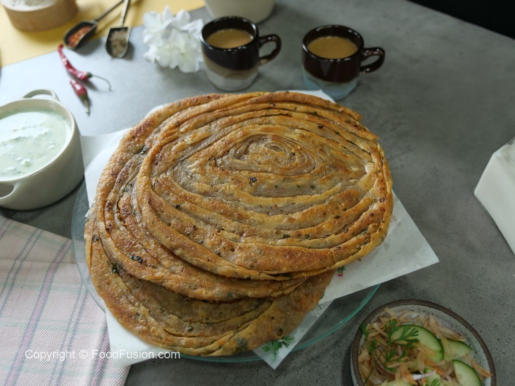 -On griddle,add clarified butter,let it melt & fry paratha from both sides until golden brown (makes 5).