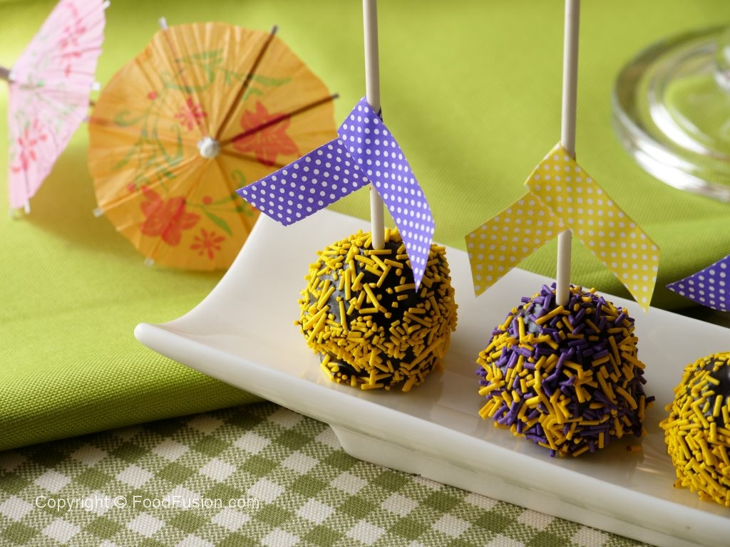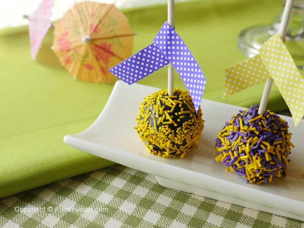 Ab cake pop sticks ko melted cooking chocolate mein dip karein aur foran cake pops mein laga lein aur 30 minutes kliya refrigerate ker lein.