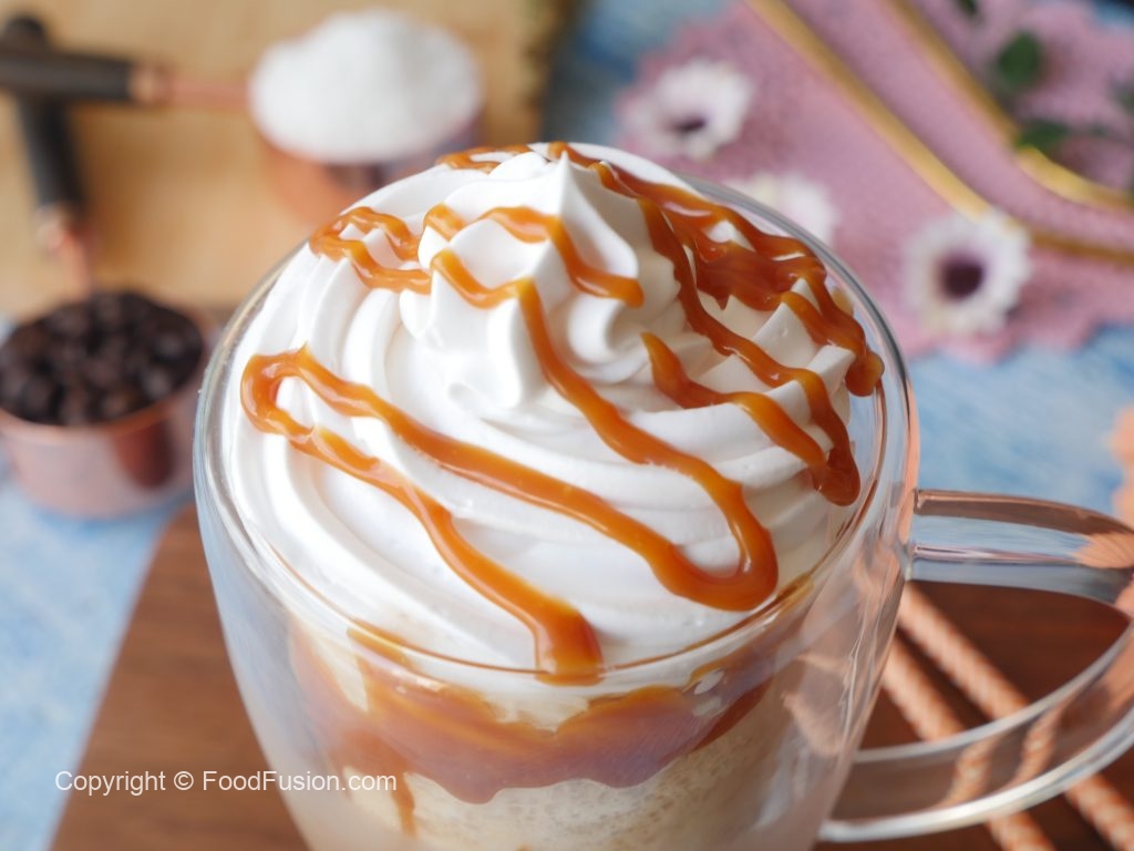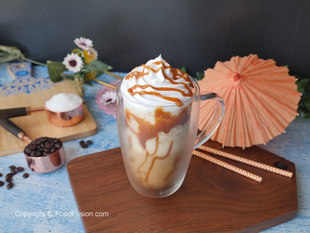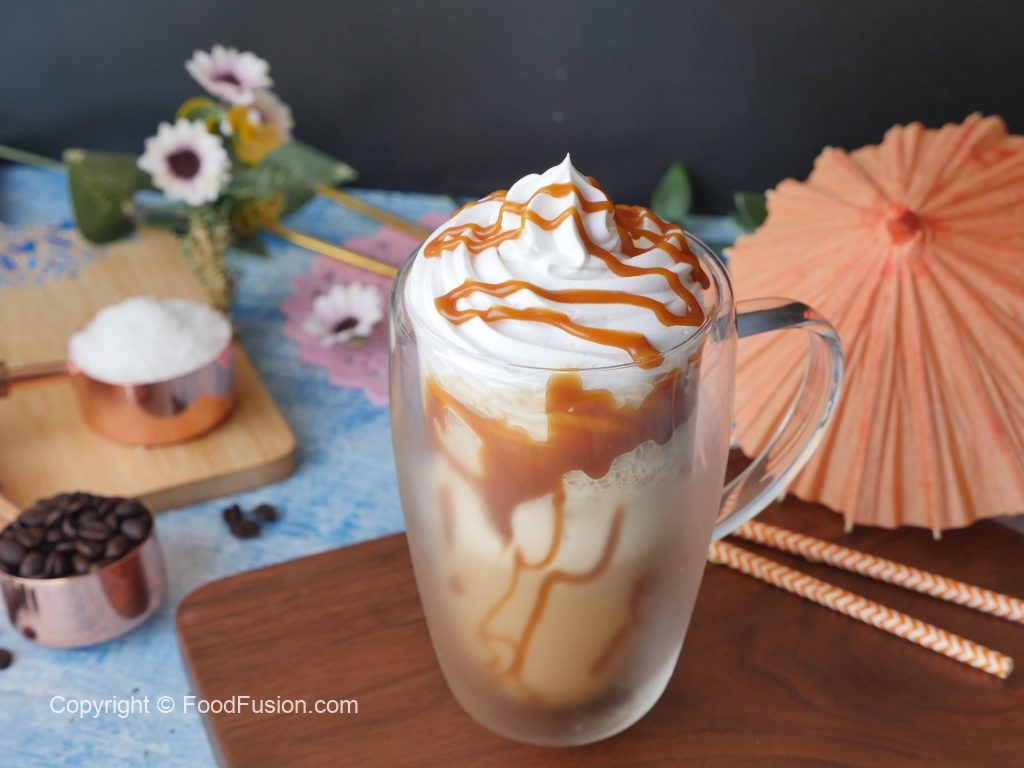 Caramel Frappuccino best summer treat for your cravings. Now you can make it at home and enjoy restaurant quality taste. #HappyCookingToYou #FoodFusion