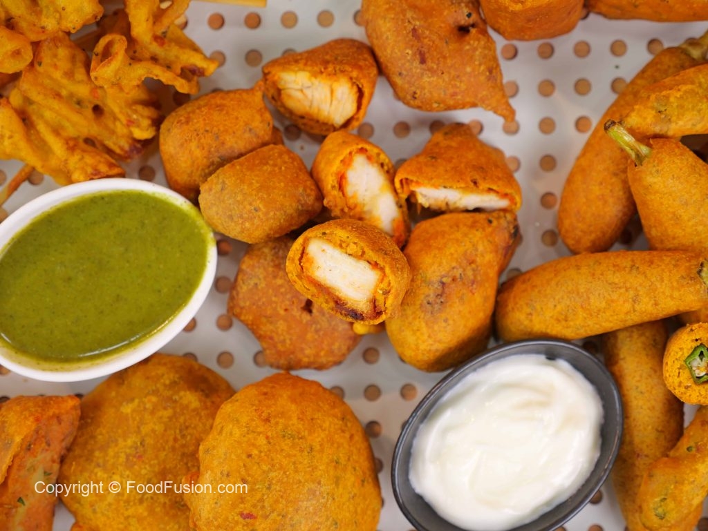 -Dip in thin pakora batter & fry in pre-heated cooking oil until golden.