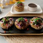 Aalo tikki per dahi,band gobhi,pyaz,shimla mirch,tamatar,hara dhania aur tayyar chutney dal dein.