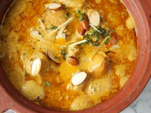 -Add prepared badami chicken,garnish with fried almonds,fresh coriander,ginger & serve!