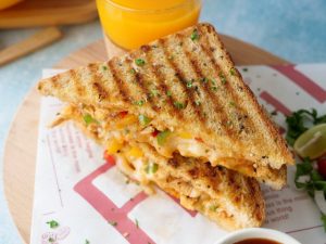 Sandwich ko flip ker lein aur halki ancch per cheese melt ho janay tak grill ker lein (makes 4 sandwiches).