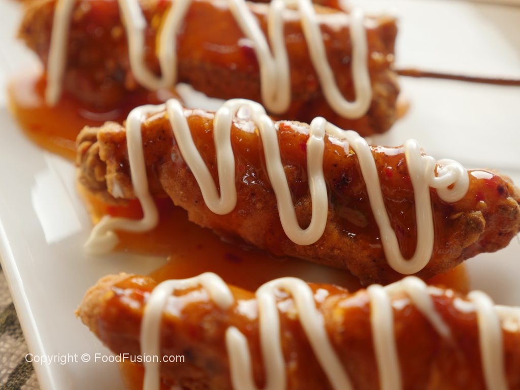Tayyar sweet chili sauce aur mayonnaise ka saath serve karein.