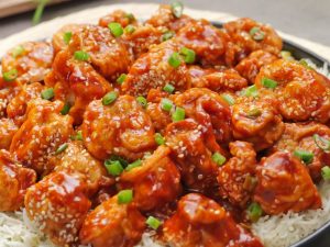 In wok,heat cooking oil and fry chicken sticks until crispy & golden brown.