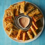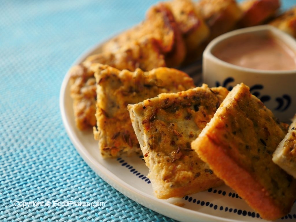 In frying pan, add oil and place bread slices (spread side downwards) and fry for 4-5 minutes on low flame.