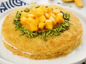 -Pipe out the chocolate mocha mousse in oval shape silicone cake mold,spread evenly & place a thin layer of sponge cake,press gently & freeze for 6 hours or overnight in freezer.