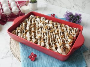 Take out casserole from refrigerator & remove cling film.