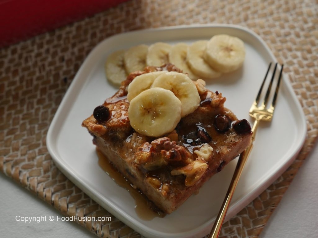 Now add bread cubes,chocolate chips,walnuts & mix well.