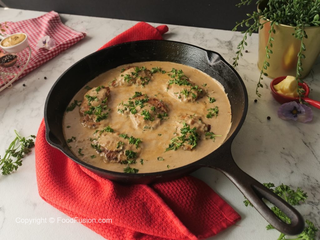 -Jug mein cream,yakhni,Dijon mustard,namak,kali mirch crushed,cayeen powder aur dried thyme dal ker ache tarhan whisk ker lein & side per rakh dein.
