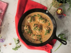 -In a jug add cream,chicken stock,dijon mustard,salt,black pepper crushed,cayenne pepper,dried thyme,whisk well & set aside.