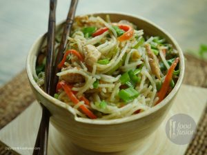 Heat oil in a wok, take one marinated chicken fillet, dip into egg mixture and coat it with flour mixture then again dip into egg mixture and flour mixture (press hard for crispy fillet).