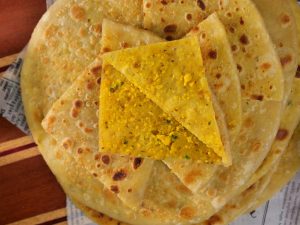 -Heat griddle & fry paratha from both sides with clarified butter.