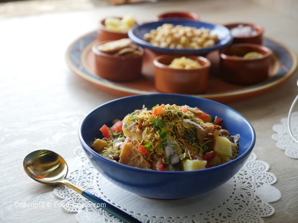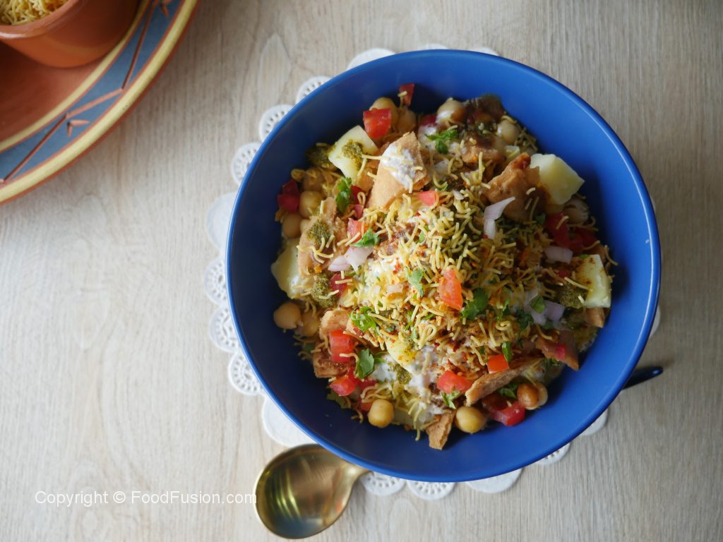 Serving plate mein papri,dumplings,chanay,aloo,tamatar,pyaz,namak,lal mirch crushed,chaat masala, zeera,lemon juice,hari chutney,khajure imli chutney,dahi,chanay,papri,aloo,tamatar,pyaz,sev nimco,dahi,hari chutney,khajure imli chutney,hari chutney,lal mirch crushed,namak,chaat masala aur hara dhania dal ker serve karein.