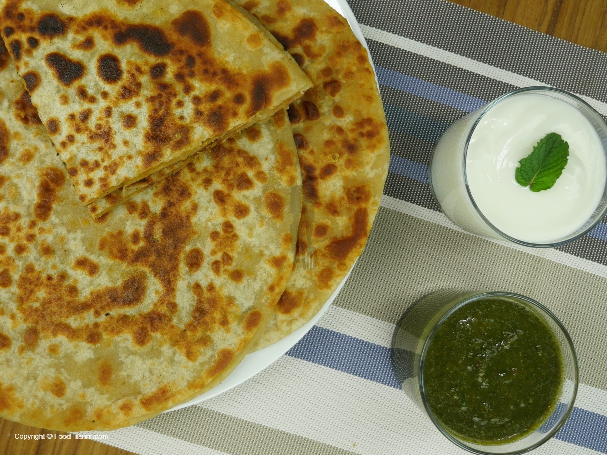Tawa ko garam ker ka paratha ko ghee mein dono sides sa fry ker lein.