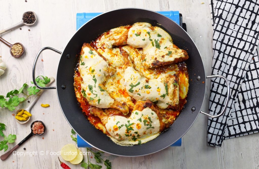 -Remove cover, flip the chicken pieces, pour prepared signature garlic sauce over chicken, cover & cook on low flame for 2-3 minutes.