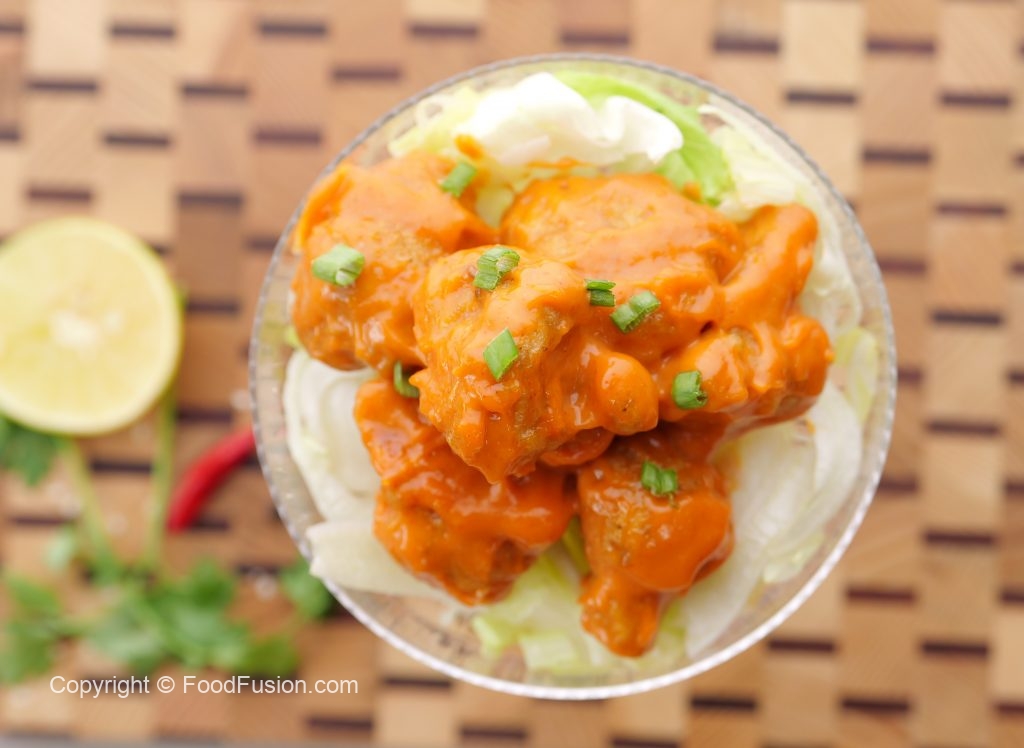 -Serve on iceberg leaves,garnish with sesame seeds & spring onion leaves!