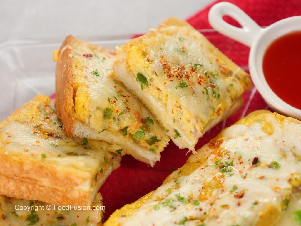-Place side part of bread slice,add half quantity of prepared egg mixture in the center,cover & let it cook on low flame until done (1-2 minutes).