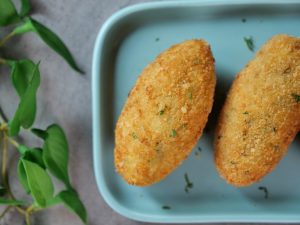 -Now dip in whisked eggs than coat with breadcrumbs (makes 12).