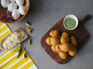 Take a mixture and make balls of equal sizes then dip into prepared batter.