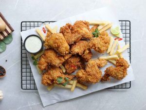 -Crispy fried wings ko fries & sauce ka saath serve karein!