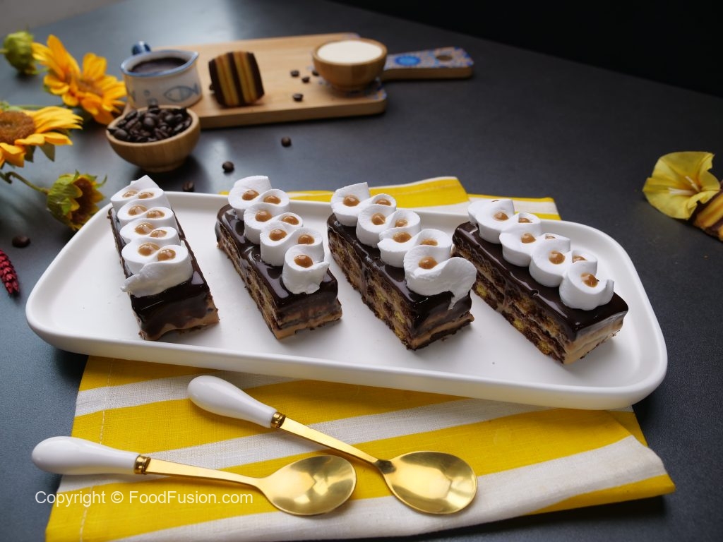 -Dip chocolate sooper biscuits in prepared coffee mixture & layer them in the base of the mold.