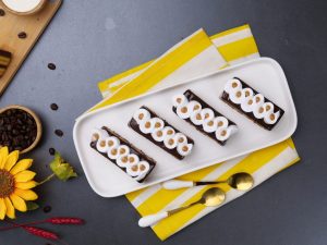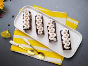 -Wrap one side of 3.5 x 8.5-inch mold with cling film & place it on a tray.
