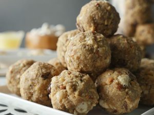 Mixture (50g) ko la ker ek jaisay sizes ka laddu tayyar ker lein (makes 31-32).