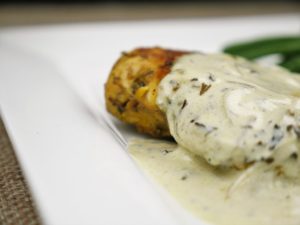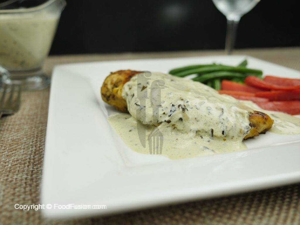 Tarragon sauce ko grilled chicken per dal ker serve karein.