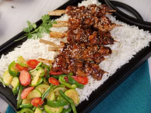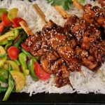 -Sprinkle sesame seeds & serve grilled teriyaki chicken with boiled rice & sautéed vegetables.