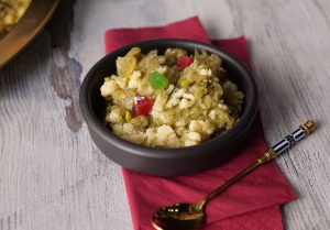 Garnish it with edible silver leaf, tutti frutti & pistachios, serve!